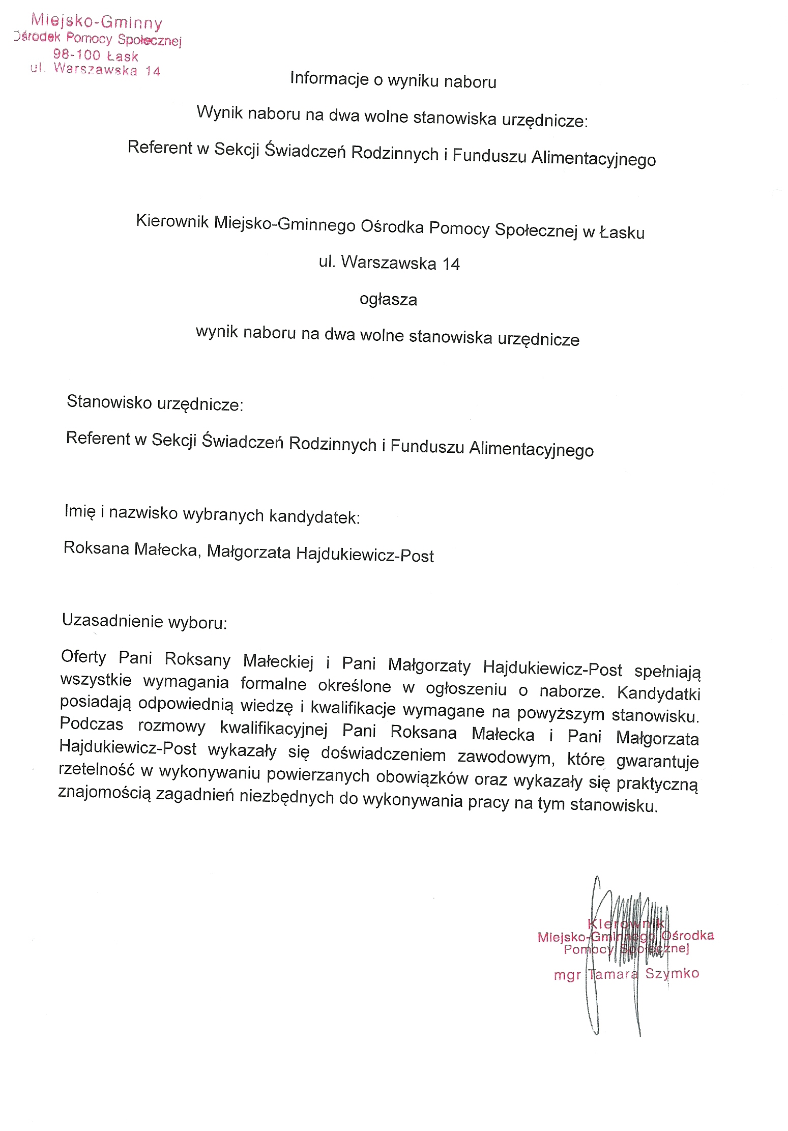 DrukujGeneruj PDF Informacja o wynikach naboru na 2 wolne stanowisko urzędnicze Załączniki: wyniki_naboru.jpg